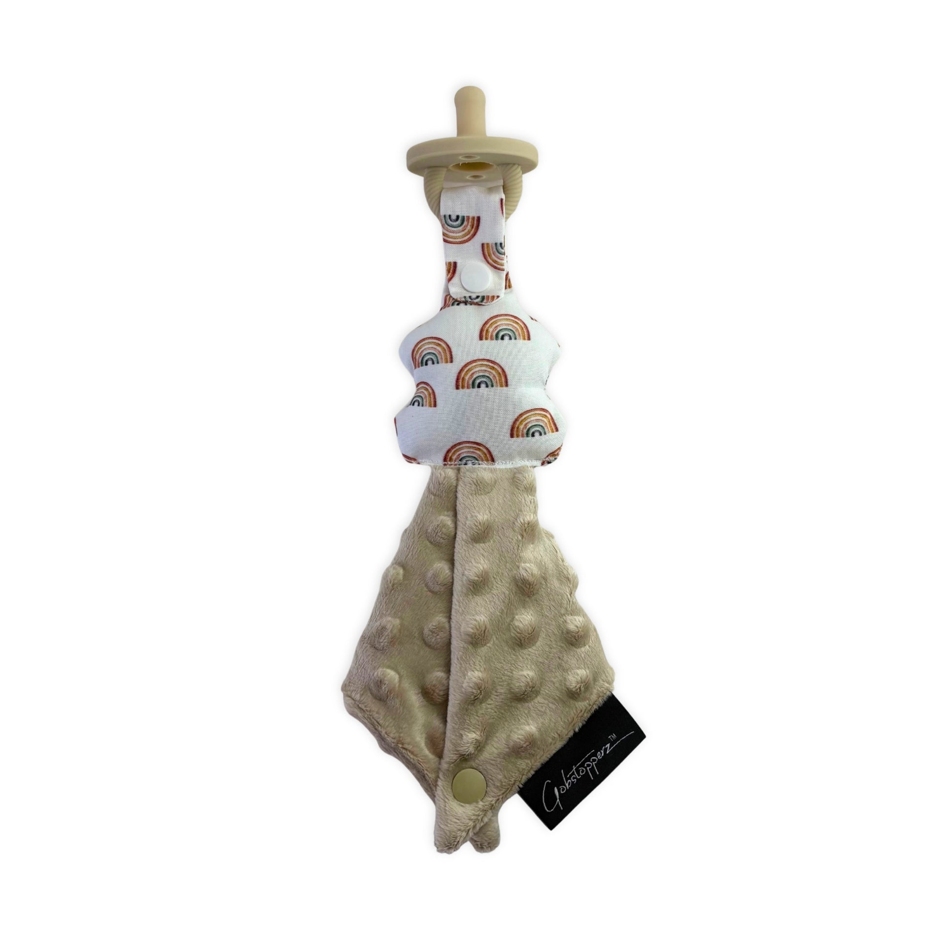 Soft, snuggly, and always within reach! Gobstopperz Mini's keep your baby's dummy, teether, or favourite toy close and clean, wherever the day takes you.
